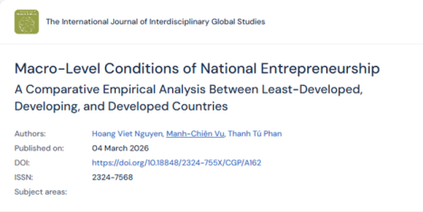 Các điều kiện vĩ mô đối với khởi nghiệp quốc gia: Phân tích thực nghiệm so sánh giữa các quốc gia kém phát triển, đang phát triển và phát triển – Công bố quốc tế của CSTRAD